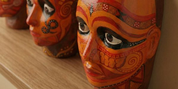 These unique hand-painted Theyyam heads are masterpieces, adorned with vibrant colors that embody the essence of Kerala's traditional art. We take pride in utilizing high-quality materials to ensure our pieces are not only beautiful but also durable. Each Theyyam head is crafted with high-pigment acrylics on a lightweight silicone base, making them both vibrant and enduring, ready to bless any space they adorn — whether standing proudly on a shelf or watching over from a wall.